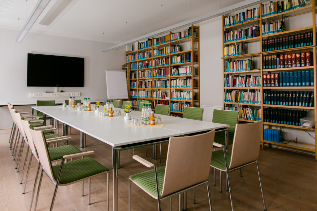 Bibliothek Das bietet Ihnen die Alte Bibliothek Platz für bis zu 20 Gäste auf 42 Quadratmetern. einen großen Flatscreen für Präsentationen Musterbestuhlung offener Block für 20 Personen